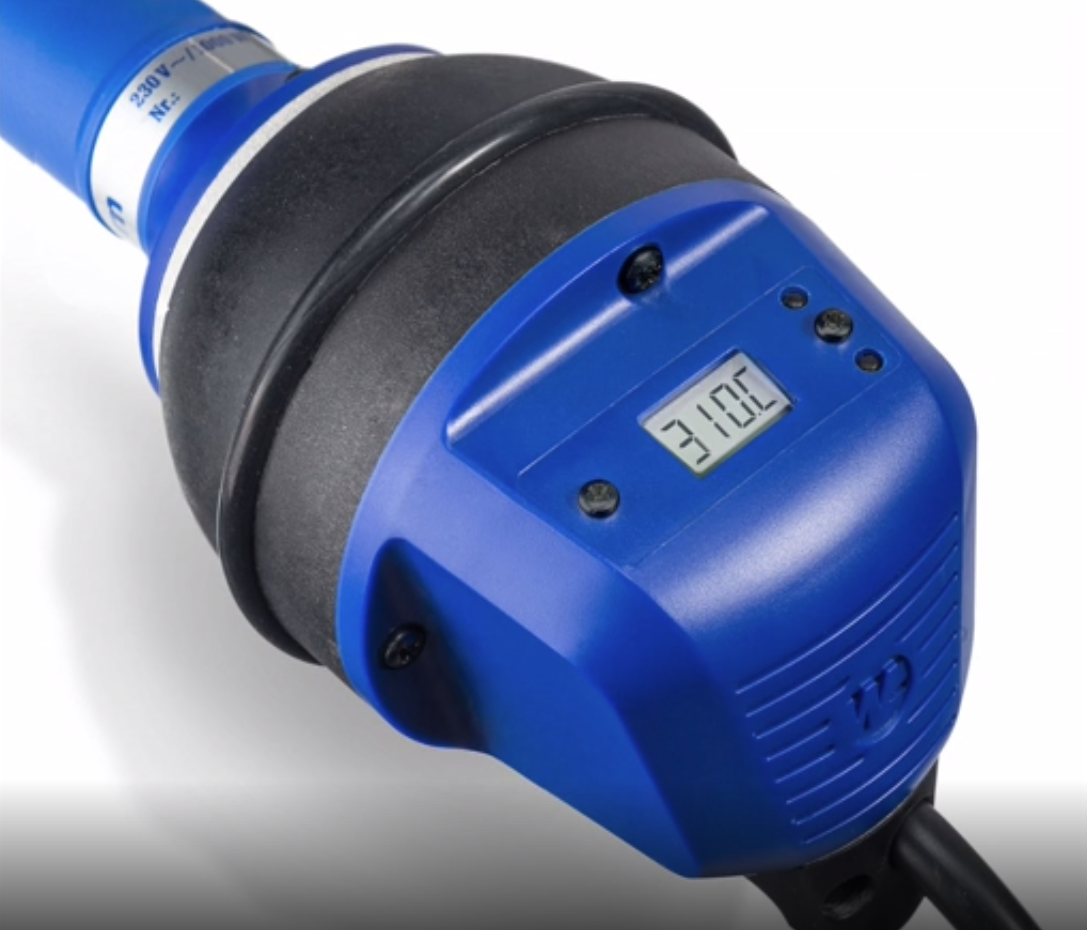 Exotherm, varmluft plast-svejsemaskine med egen luftforsyning og visning af den aktuelle og ønskede temperatur i  display.