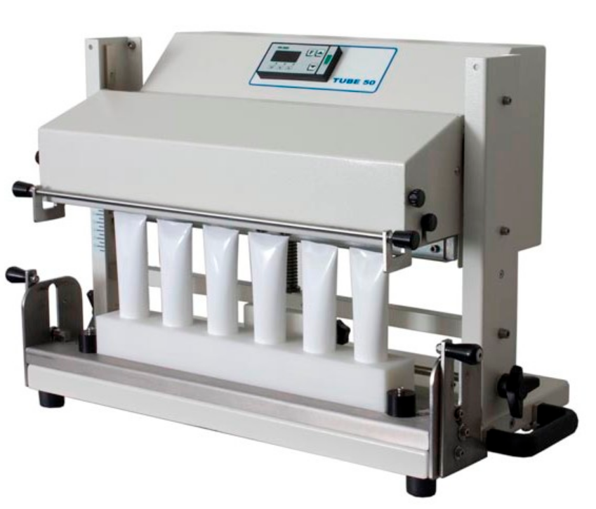Til svejsning af plast tuber af PE og PP samt tynde kvaliteter af barrier materialer. Tube diameter ca. 20 til 60 mm. 4 til 6 tuber kan svejses samtidig. Tube længde ca. 70 til 230 mm. Digital kontrol af svejsetemperatur, svejsetid, og køletid. Kode i svejsesøm muligt. Længde af svejseskinner 400 mm. Svejsebredde ca. 4 mm. Leveres med 1 tubeholder efter opgave. Vare nr. 547.050