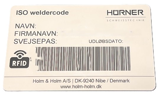 ISO Svejsekode/RFID kort med stregkode og RFID programmeret med deres data. (ISO Welder Code)