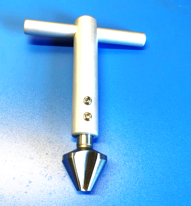 60° Spidsforsænker monteret i rustfri T-greb. Benyttes inden svejsning af koniske plastpropper