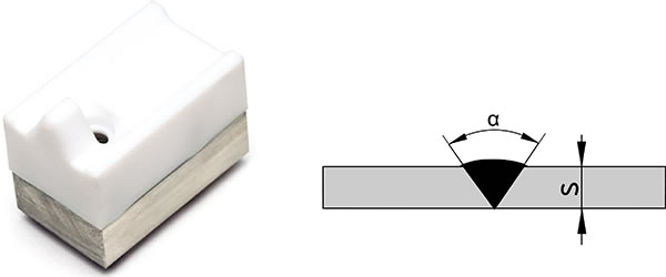 Teflon svejsesko med aluminium base, til ekstrudersvejsning af V fuge i 40 mm. plastplader.