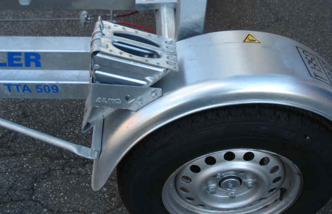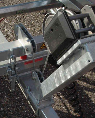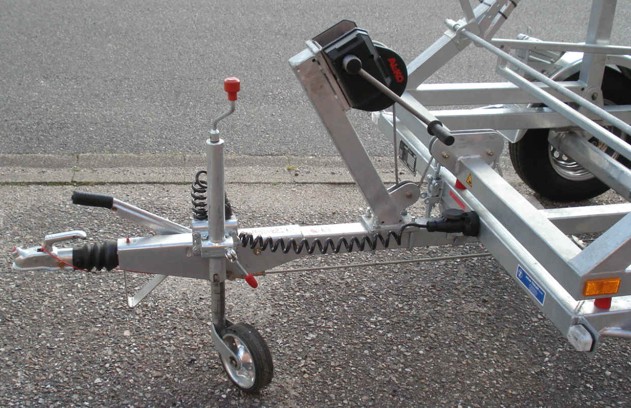 Løft og sænkning ved mekanisk spil, enkelt aksel chassis med påløbsbremse, lige trækstang med kuglekobling, TÜV godkendelse, hvis det kræves,