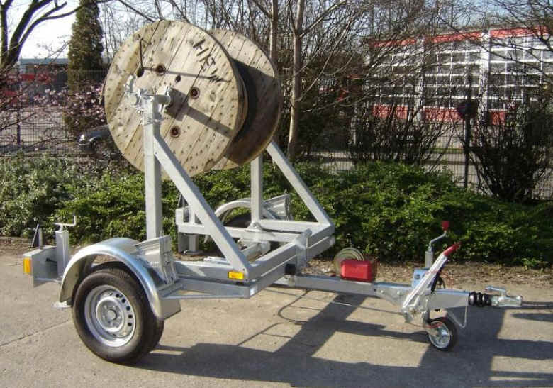 Kabeltromletrailer / Udrullertrailer 1T uden bur Nyttelast 1010 kg, egenvægt 340 kg. Lige trækstang . TÜV parpirer. Vare nr. 441.001