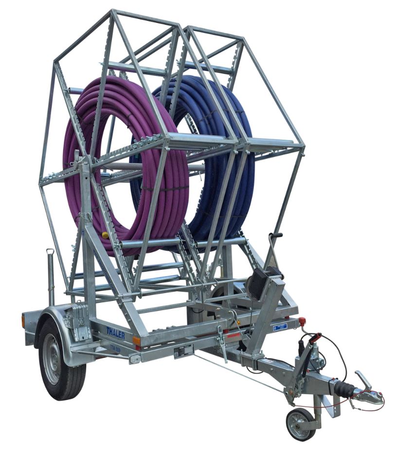 Ekstraudstyr • højdejusterbar trækstang med kugle-, DIN- eller NATO-kobling • Belysning-system 24 Volt • Andre tromle dimensioner og vægte på forespørgsel • Rørbur “1M / 2x0,5M for rør og kabler fra ø 32-63 mm Max. rørslange Ø: 2200 mm. Max. rørslange bredde: 500 mm. eller 1000 mm. Max. rør spole vægt 150 kg. eller 300 kg. Længde 2500 mm, bredde 640 mm, højde 2265 mm. Egenvægt af 500 mm. bred bur 138 kg.