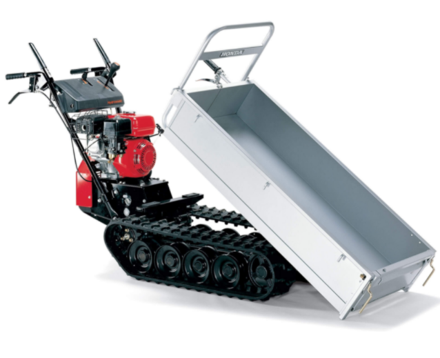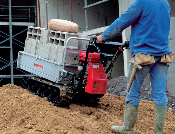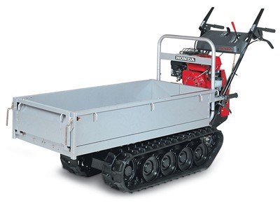 Honda Transporter HP500H. Kraftig transporter på bælter med hydrostatisk fremdrift. Lastekapacitet ved vandret kørsel er 500 kg og 350 kg ved en stigning på 25°. En rigtig kraftig transporter der forcere selv meget uvejsomt terræn m.v. Med en hurtig omstilling af ladbredden, kan transporteren ændres til at transportere brede emner. Variabelt ladmål 1200 x 560 x 200 -730 x 900 x 200 mm