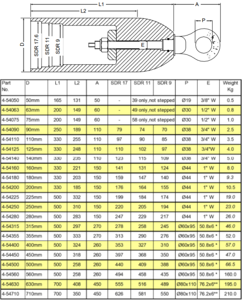 50 mm. Trækhoved i PE til påsvejsning. SDR 7,4/11/17