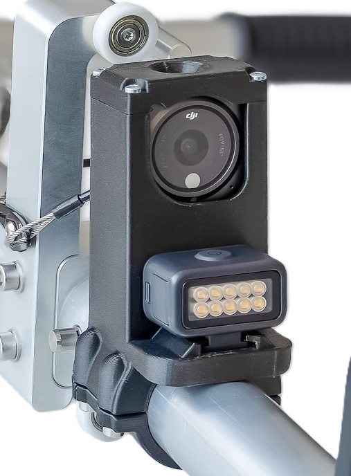 Trådløs kamerasamling til intern vulstfjerner som kan fastgøres oven på drivstængerne, foran skærehovedet, inkl. beslag og belysning