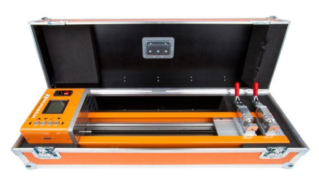Trækprøve Tester Elektrisk med dataudlæsning, Munsch Accura-Dat. Max. prøve tykkelse: 8mm. Max. kraft: 4200N . Max. test afstand: 500 mm. Vægt: 38 kg . Dimensioner: 110 x 32 x 25 cm. Inkl. Transportkasse, SD-kort samt software (Kræver Excel 2003 eller nyere)