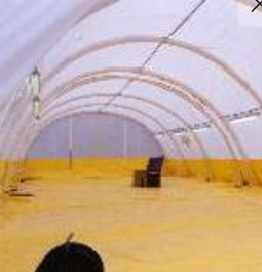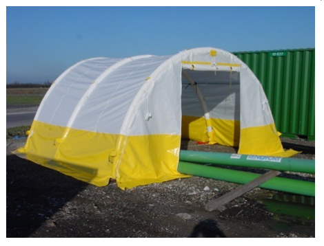 Oppustelige tunnel telte er buede telte med ramme der består hovedsageligt af oppustelige rør med syntetiske inderrør og polyesterhus. Teltet er klar til brug på femten til tyve minutter ved hjælp af en kompressor eller flasker med trykluft. Tunnelteltet i polyester leveres som standard i hvidt. Stoffet er lys gennemtrængeligt og behageligt at arbejde i. Om nødvendigt kan hele teltet forstærkes med dobbeltsidet, belagt PVC, som leveres som standard i gult. Hvor det er muligt, kan disse telte produceres, så de opfylder dine specifikationer.
