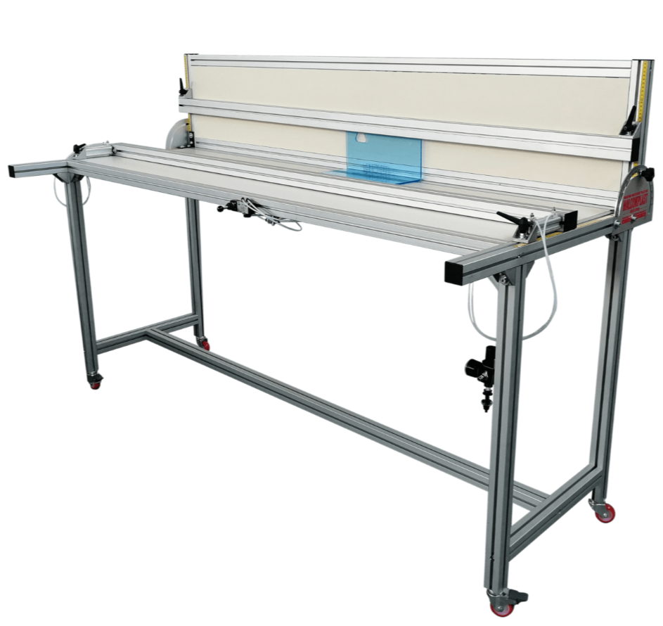 Bukningsbord TP 3000 plus til bøjning af opvarmede plader i termoplastisk materiale som PMMA, PC, PE, PVC osv. De er fremstillet i aluminiumsprofil og malede spånplader.