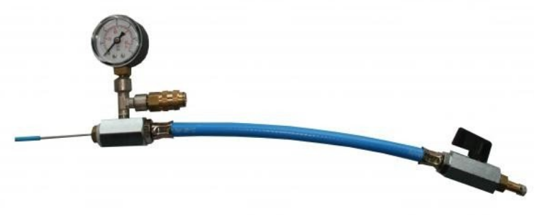 Testnål med manometer, slange og ventil. Udtag til datalogger
