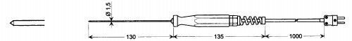 Føler, Masse, type K - GES 130 Indstiksføler, Ø1,5, håndholdt, NiCr-Ni(K) -65..+550 grader C
