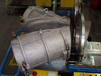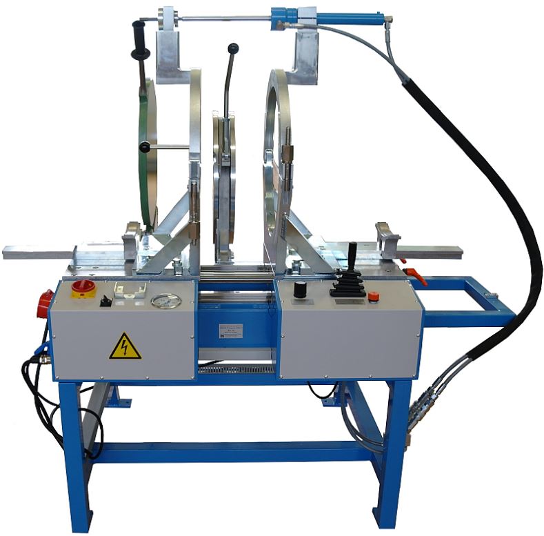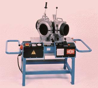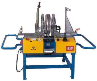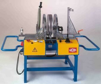 Welding machine WDS 4002 / OD 315 WM Welding machine for heating element butt welding of PE, PP and PVDF-tubes and fittings from OD 90 up to OD 315, built on tubular steel frame, with electrohydraulic adjusting device for control and application of the welding pressure, planer with electric chain drive in a closed aluminium housing and external chip removal, heating element holder, adjustable timer, basic clamping device swivelling on each side up to 15° for the fabrication of segmented bends and fittings, the right hand clamping device is axially movable for adjustment of diameter tolerances, without diameterdepending reducer inserts Machine including swivelable clamping tools OD 335/315,  Heating element with teflon foil covering,  planer with 1050Watt, one lever control hydraulic unit, 400 Volt / ~5.2kW    connection: CEE 16 A  (400 V / ~3ph + N + PE)